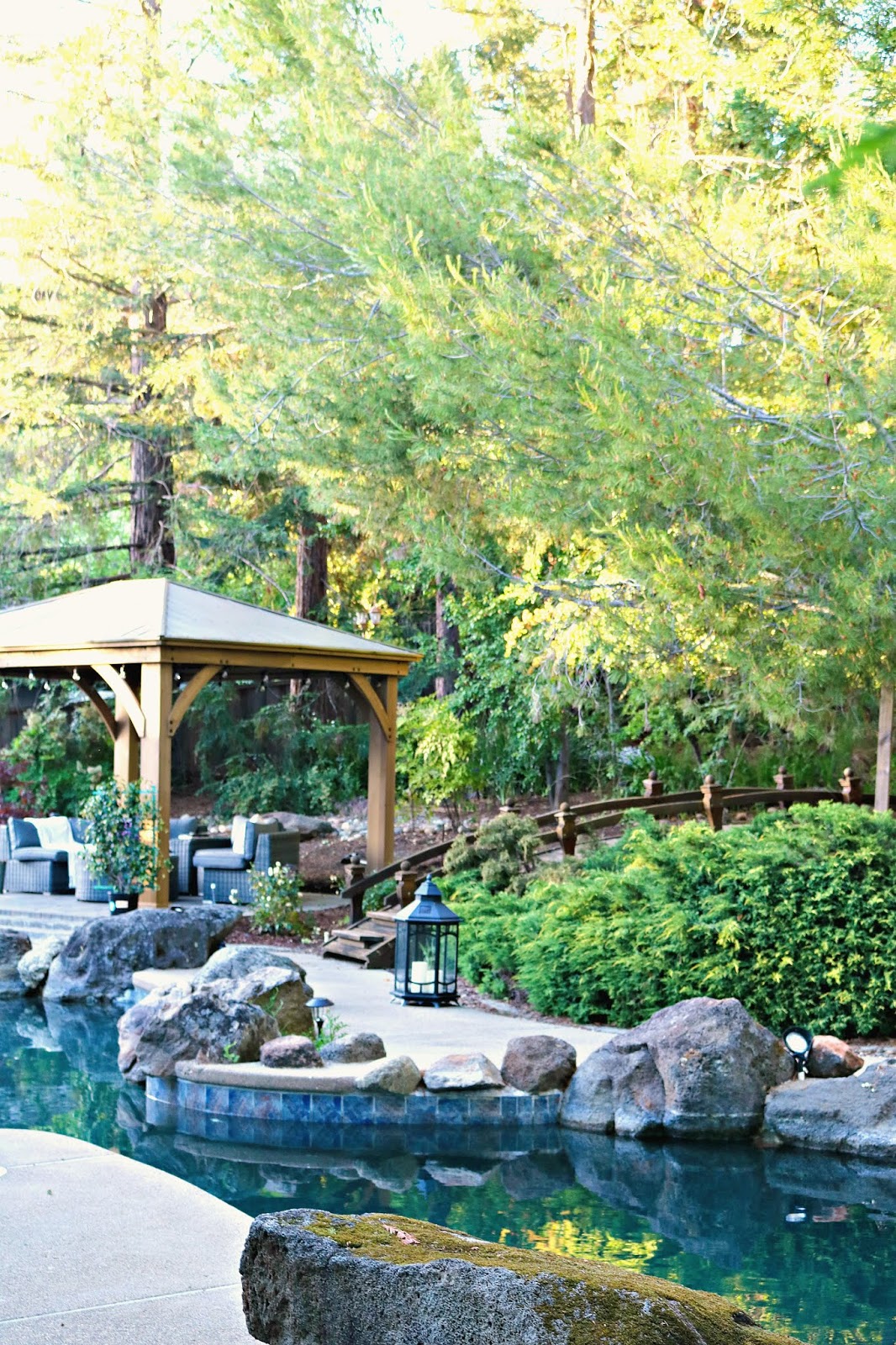 I love this bridge that leads to the forest trees, I really think the bridge is the focal point of this backyard π²