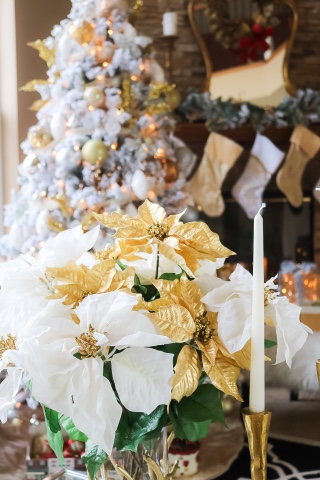 Gold & white Poinsettias were a must have to place over my coffee table. Also got these beauties from my local seasonal store Richards.